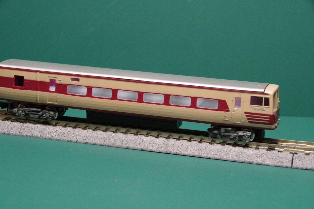 ボディーのクリア塗装まで終わったので、側面の客室窓だけ取り付けて、室内灯の実験をしてみました。