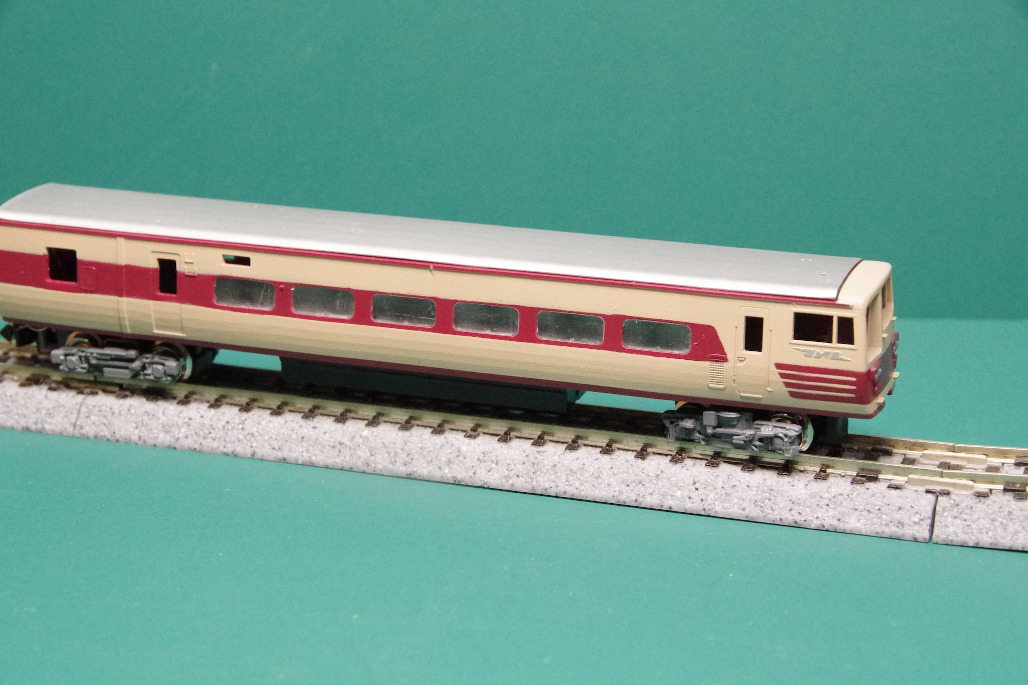 ボディーのクリア塗装まで終わったので、側面の客室窓だけ取り付けて、室内灯の実験をしてみました。